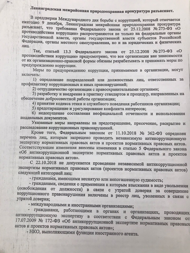 Разъяснение Ленинградской межрайонной природоохранной прокуратуры.